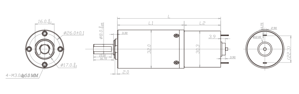 | 齒輪箱長(zhǎng)度L1(mm) | 25.7 | 35.7 | 45.7 | 55.7 |