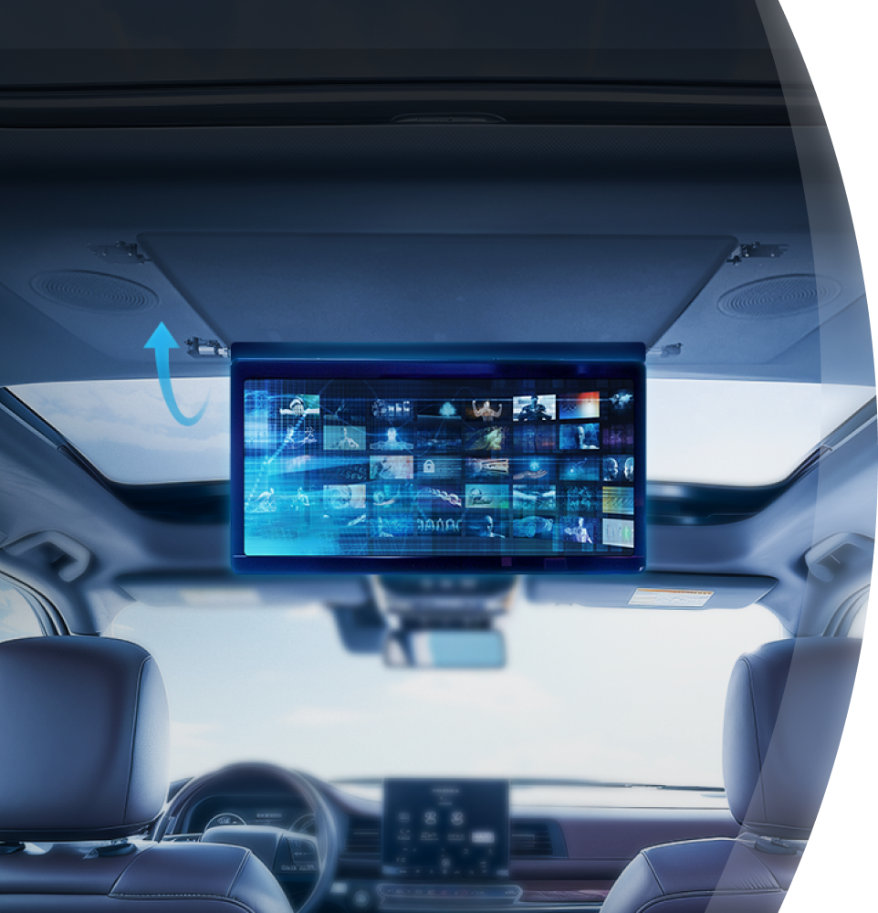 兆威后排吸頂屏,通過產品殼體帶動屏幕組件旋轉,旋轉角度存在多個檔位,使用者可調整屏幕角度,同時還具備限位功能,遇到顛簸路況也能保持穩定。